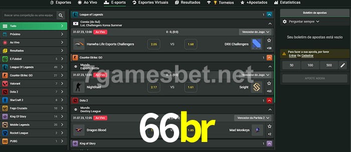 O 66br oferece uma grande seleção de opções de apostas em e-sports com probabilidades competitivas